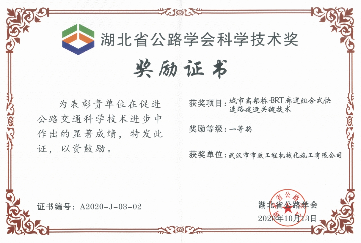 湖北省公路學(xué)會科學(xué)技術(shù)獎