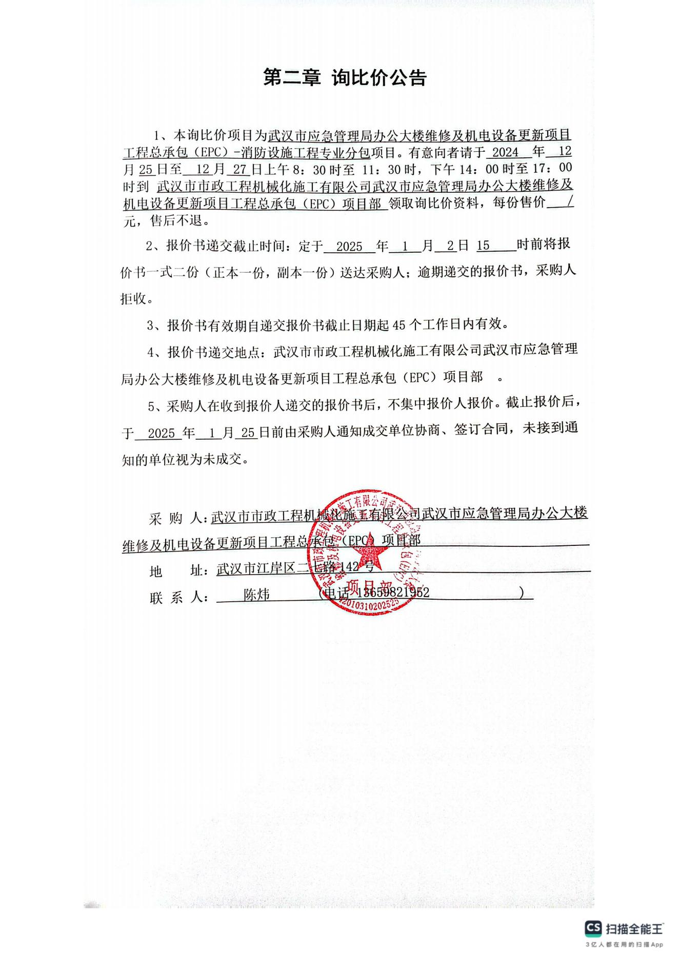 武漢市應(yīng)急管理局辦公大樓維修及機電設(shè)備更新項目工程總承包(EPC)-消防設(shè)施工程專業(yè)分包詢價公告