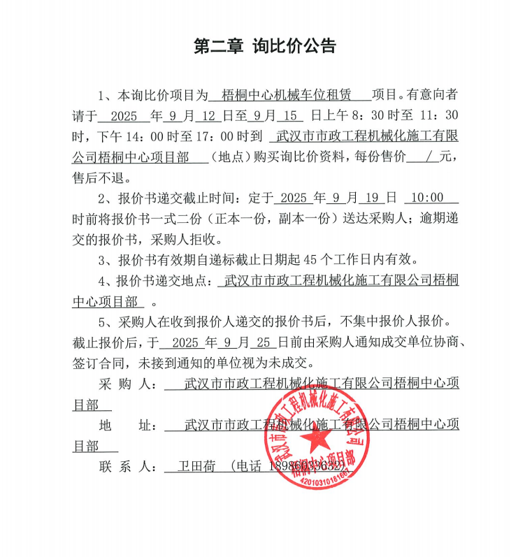 梧桐中心機(jī)械車位租賃詢價(jià)公告