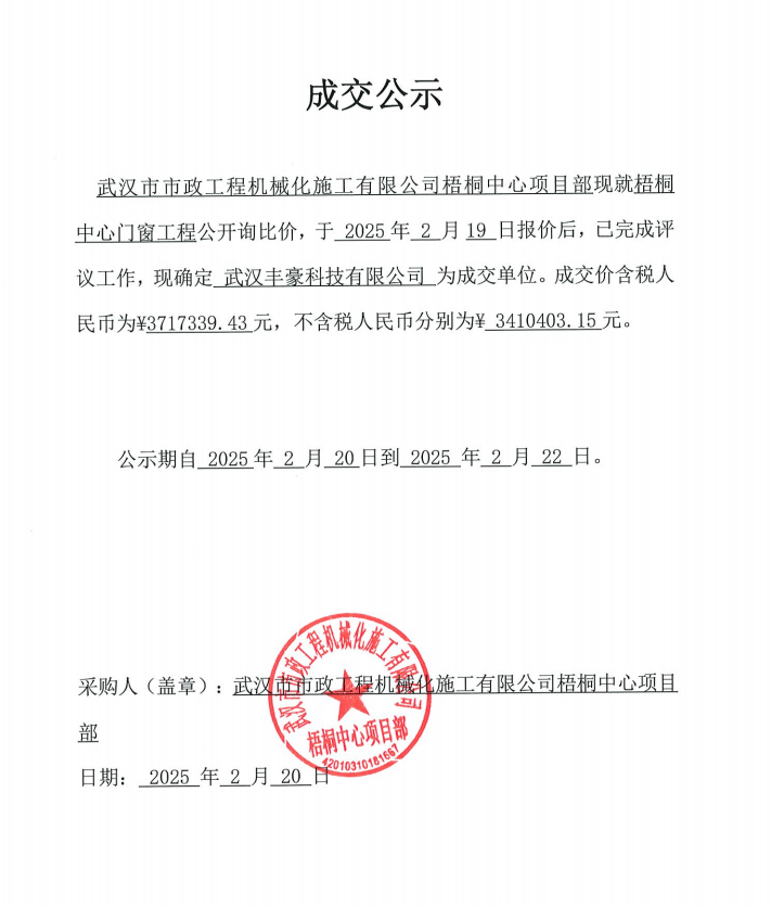 梧桐中心門窗工程成交公示