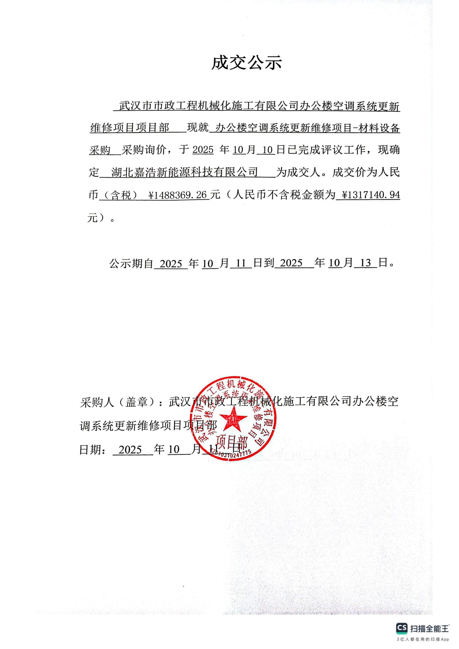 辦公樓空調(diào)系統(tǒng)更新維修項目-材料設(shè)備采購成交公示
