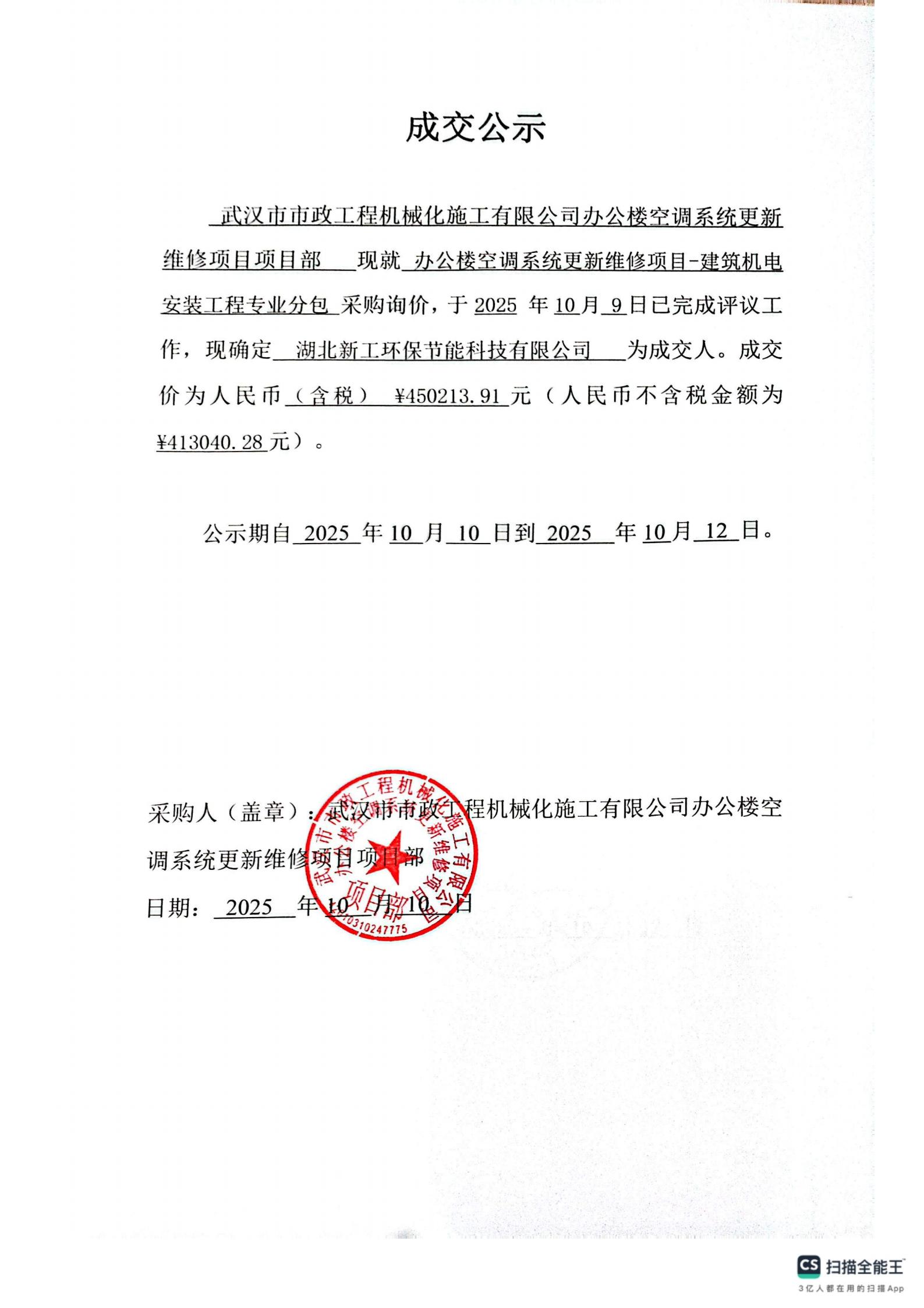 辦公樓空調(diào)系統(tǒng)更新維修項(xiàng)目-建筑機(jī)電安裝工程專業(yè)分包成交公示