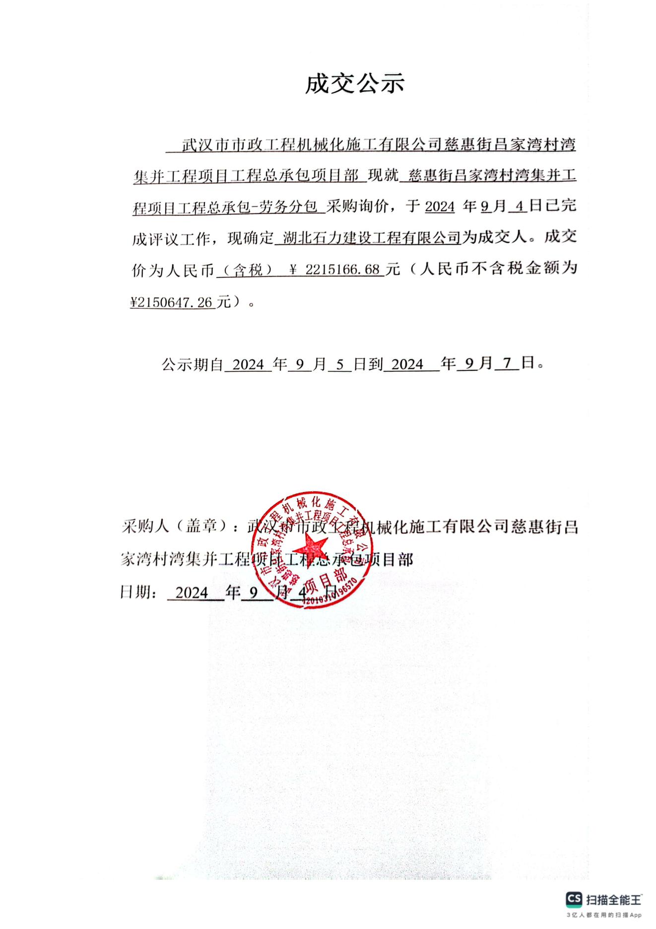 慈惠街呂家灣村灣集并工程項目工程總承包-勞務分包詢比價公示