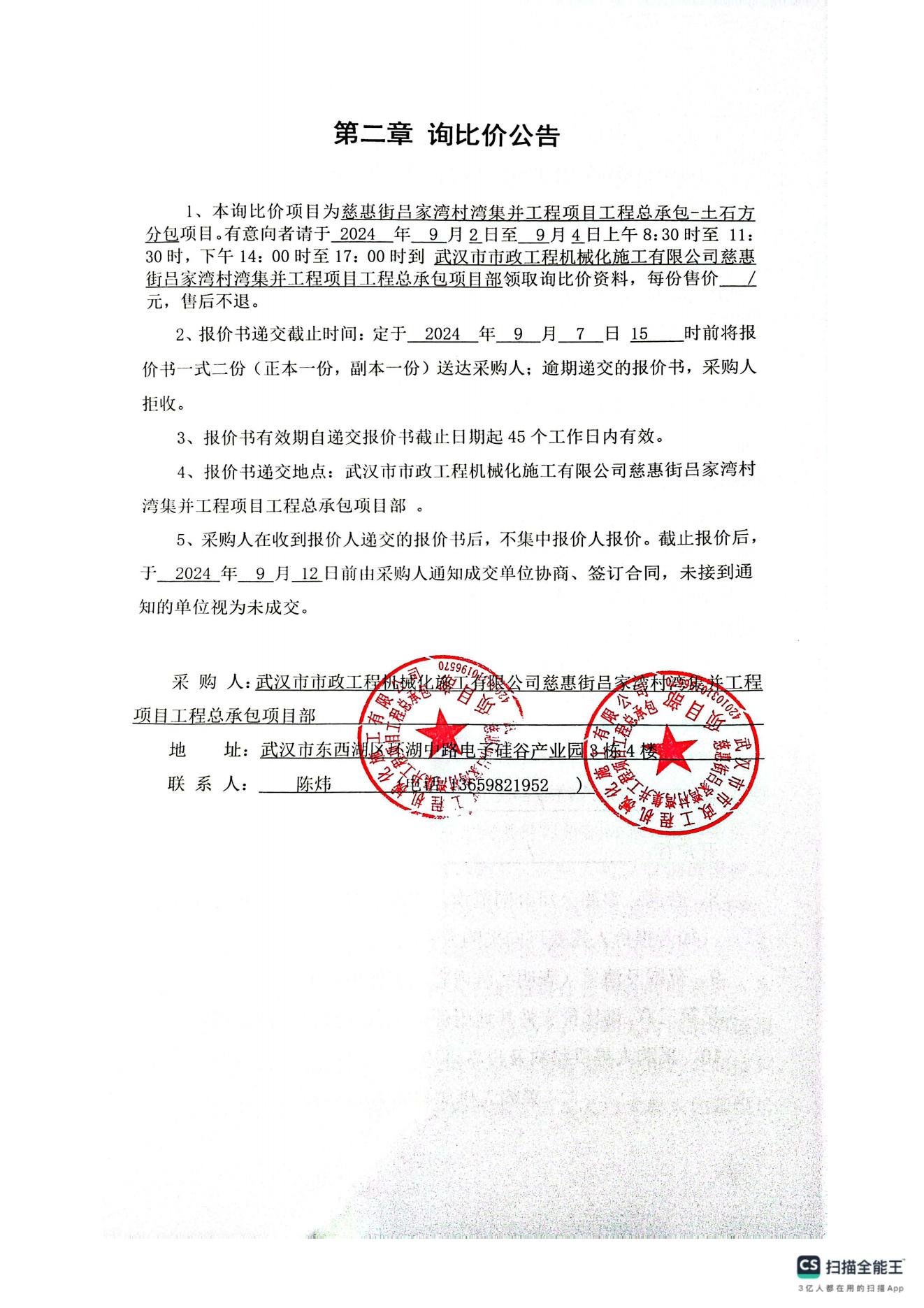 慈惠街呂家灣村灣集并工程項(xiàng)目工程總承包-土石方分包詢價(jià)公告