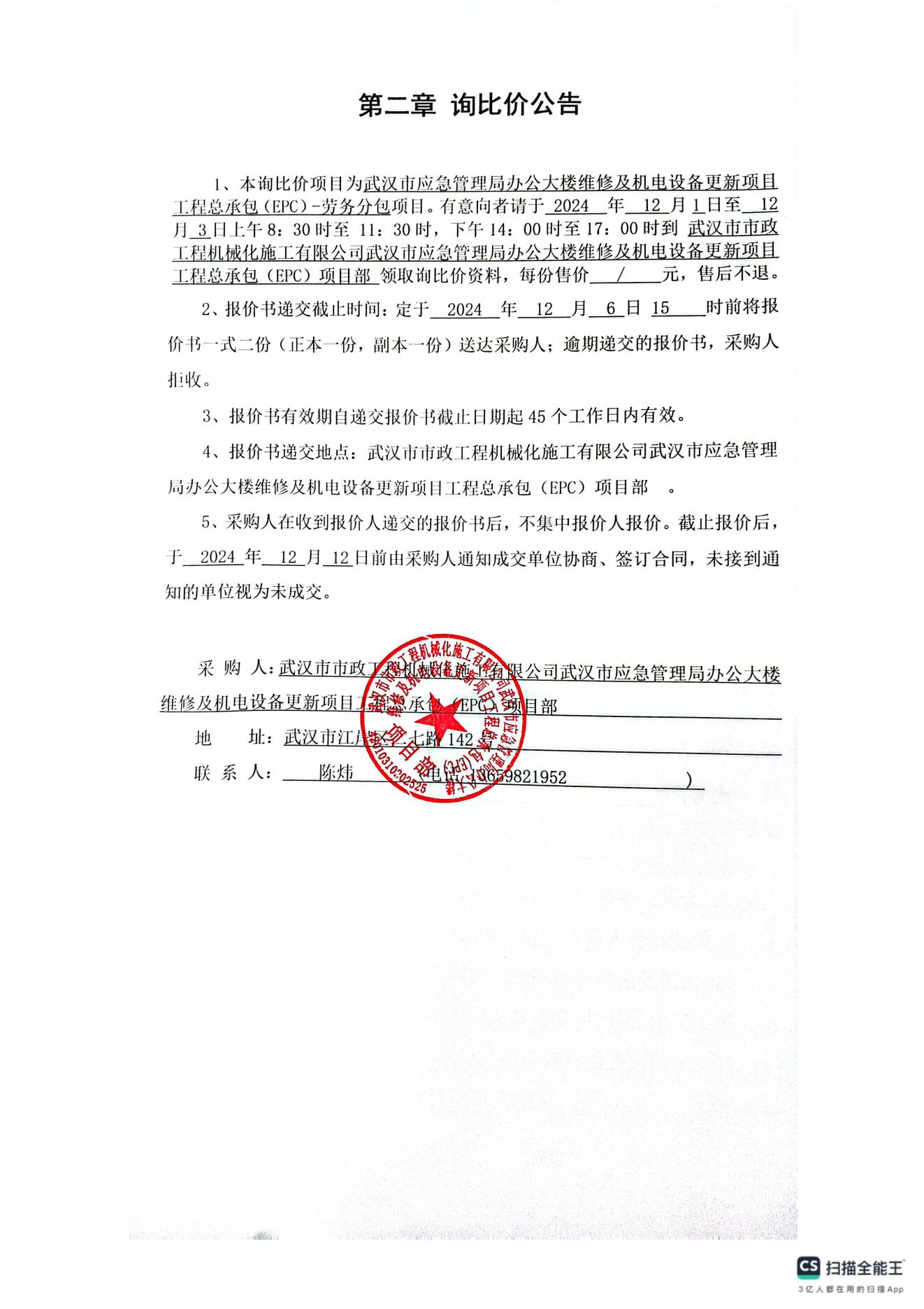 武漢市應(yīng)急管理局辦公大樓維修及機(jī)電設(shè)備更新項(xiàng)目工程總承包(EPC)-勞務(wù)分包詢(xún)價(jià)公告