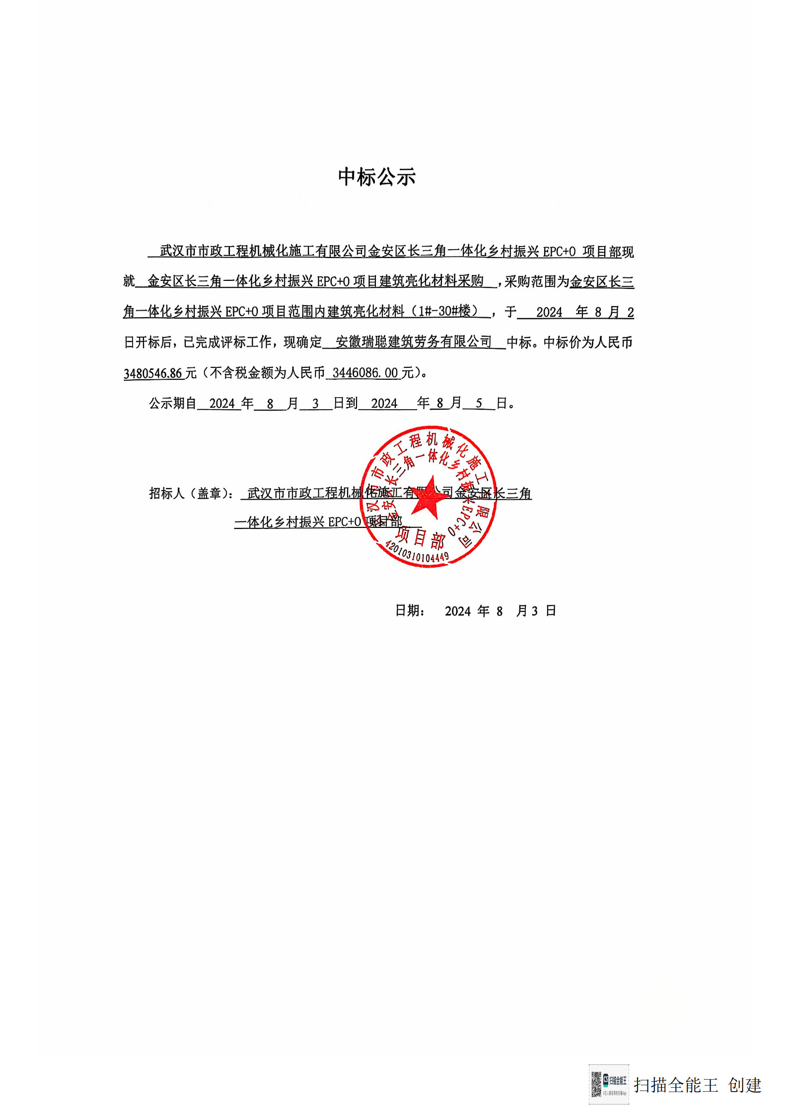 金安區(qū)長三角一體化鄉(xiāng)村振興EPC+O項目建筑亮化材料采購中標(biāo)公示