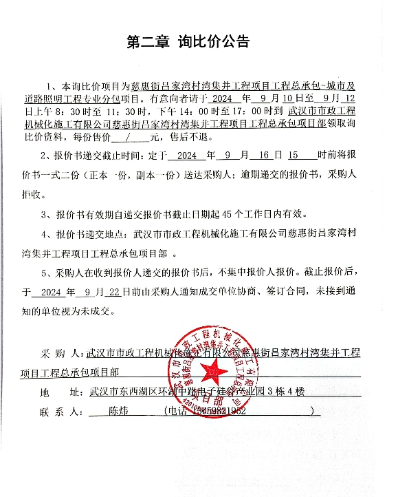 慈惠街呂家灣村灣集并工程項(xiàng)目工程總承包-城市及道路照明工程專(zhuān)業(yè)分包詢(xún)價(jià)公告