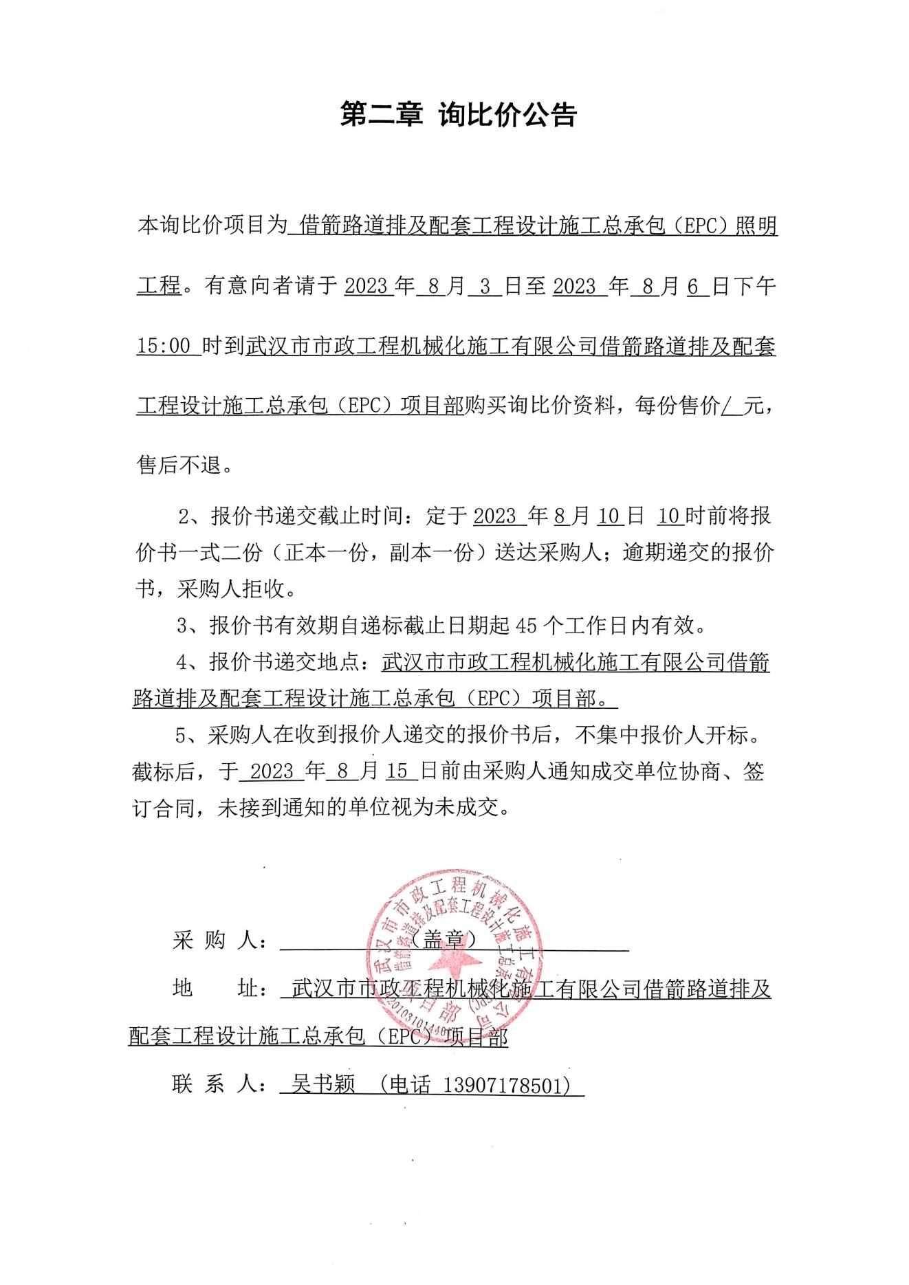 借箭路道排及配套工程設(shè)計(jì)施工總承包(EPC)照明工程詢價(jià)公告