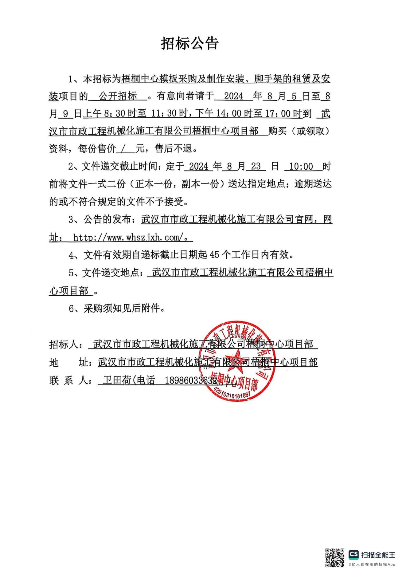 梧桐中心模板采購及制作安裝、腳手架的租賃及安裝招標(biāo)公告