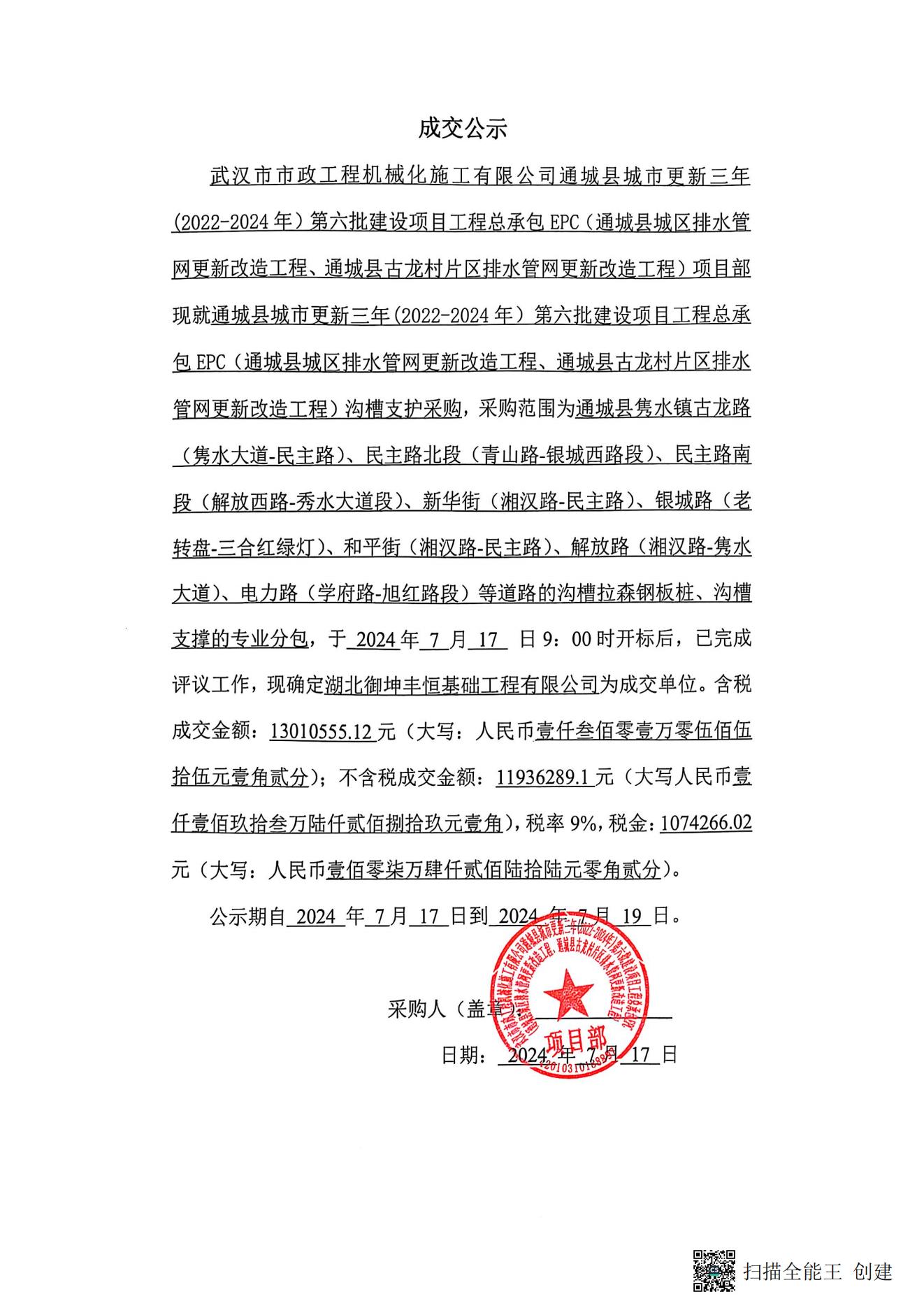 通城縣城市更新三年(2022-2024年)第六批建設(shè)項目工程總承包EPC(通城縣城區(qū)排水管網(wǎng)更新改造工程、通城縣古龍村片區(qū)排水管網(wǎng)更新改造工程)工程溝槽支護(hù)工程成交公示