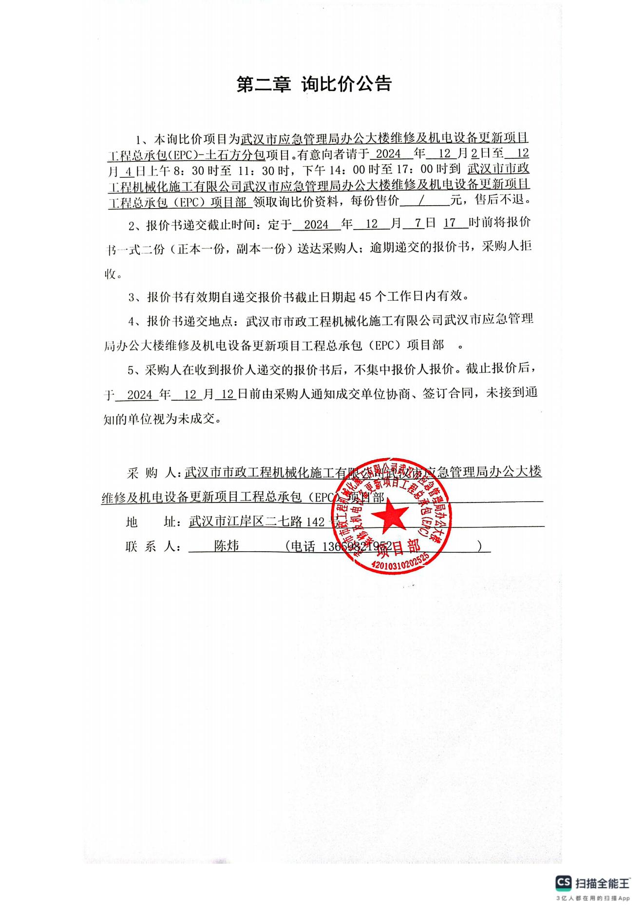 武漢市應(yīng)急管理局辦公大樓維修及機(jī)電設(shè)備更新項(xiàng)目工程總承包(EPC) -土石方分包詢價(jià)公告